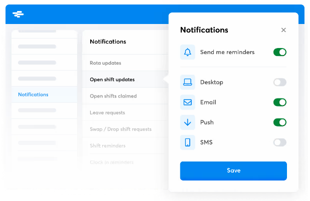 Advanced rota planning software like RotaCloud automatically alerts staff whenever there's a change to their schedule via text, email, or push notification — saving you the hassle of tracking down affected team members and ensuring that they've got the message.