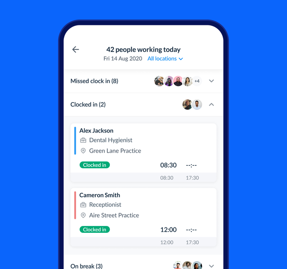 Explore Time & AttendanceIf someone's at the other site and they forget to clock in, I get a notification and I can ring over and check.