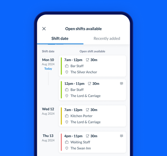 Last-minute big booking? Suddenly short-staffed? Eligible employees are automatically notified as soon as ‘open’ shifts are available, and your rota will update instantly when they’re filled.