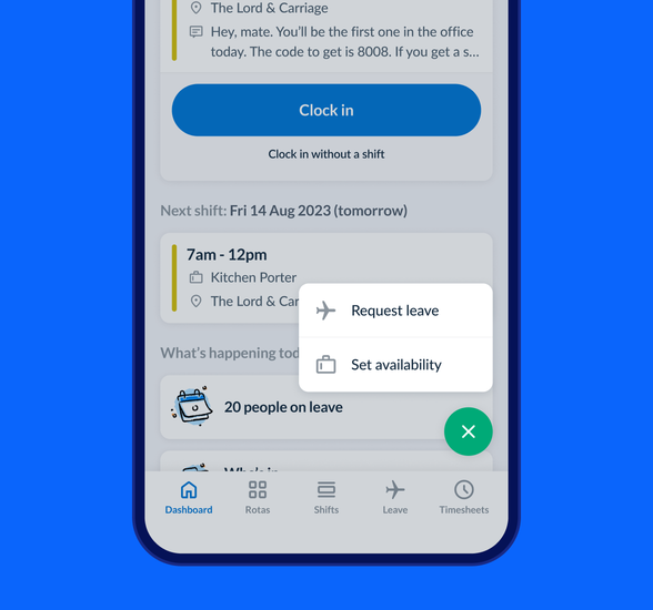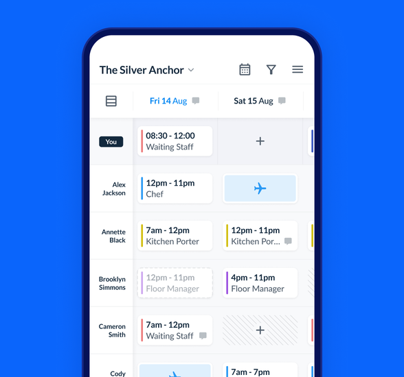 Need to change a shift once the rota’s been published? You can relax, safe in the knowledge that your chefs, baristas and waitstaff always have access to the most up-to-date version of the rota right there in their pocket.