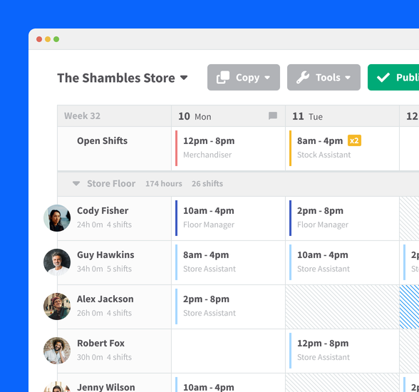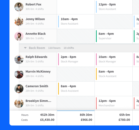 RotaCloud is cloud-based staff scheduling and time tracking software that’s designed to reduce rota headaches. We know first-hand how tricky rotas can be in retail, so we built something to change that.
