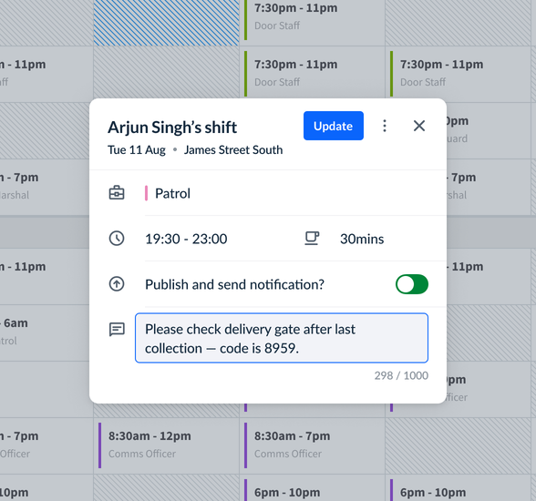 RotaCloud’s Shift Notes feature makes it easy to share important shift-related info with individual members of your team. Our Memos tool, meanwhile, is perfect for reaching out to multiple employees at once.